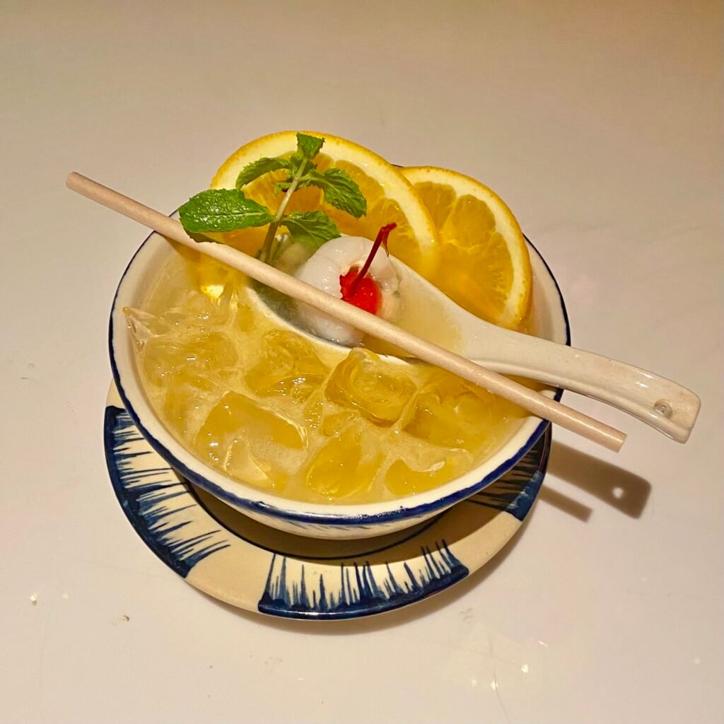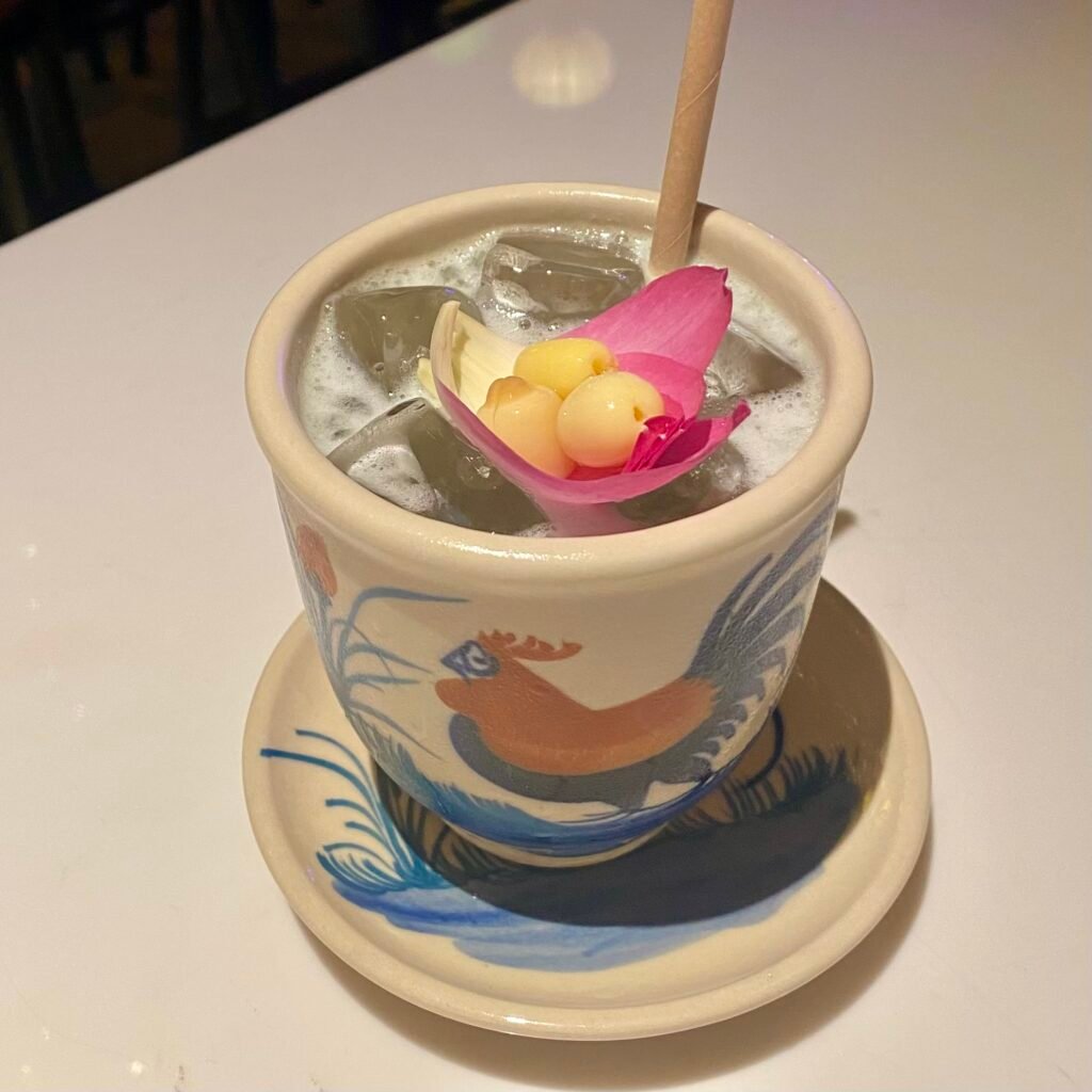 Here, we tried some cocktails inspired by the charm of Vietnam. Firstly, the ‘Hoi An Ancient Town’ was quite sweet and made with Gin infused lotus tea. Next, we had ‘The View Xin Chao’, a refreshing signature cocktail made with lychee & orange liqueurs.