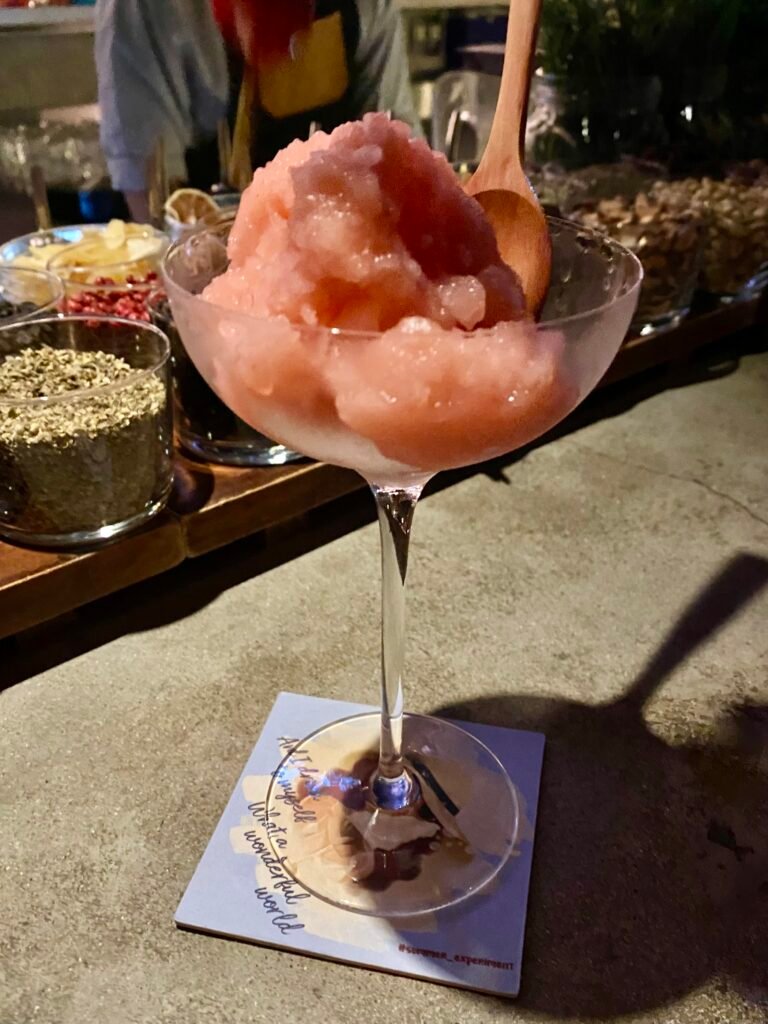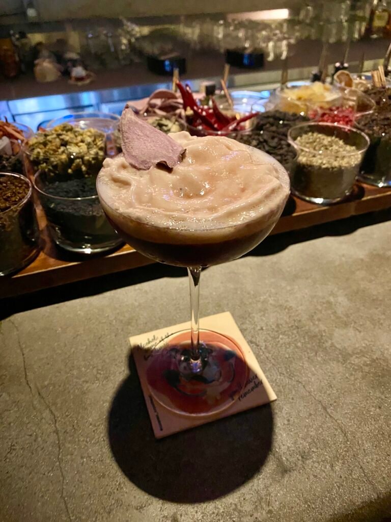 Down a small alleyway and up a few flights of stairs, you’ll find the Summer experiment. Their menu has a large range of intriguing cocktails – I chose the Purple Potato Madness – an espresso martini with purple sweet potato puree & foam. My partner chose the ‘She’s Nitrogen’ – a slushy like citrus/berry dessert with liquid nitrogen used in the crafting process. It looked like the bartender was stirring a magic cauldron for this!